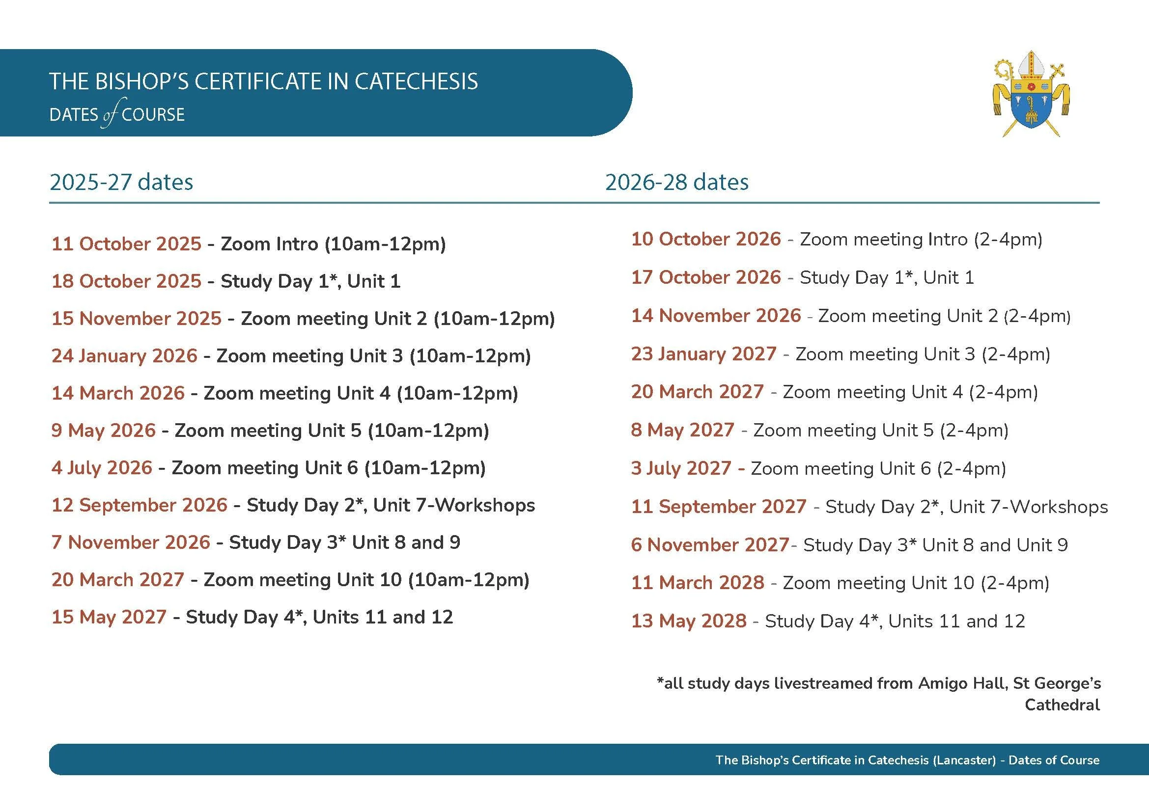 The Bishop’s Certificate in Catechesis is the principal training course in the Diocese of Lancaster whose aim is to equip and support catechists and lay leaders in evangelisation and formation.